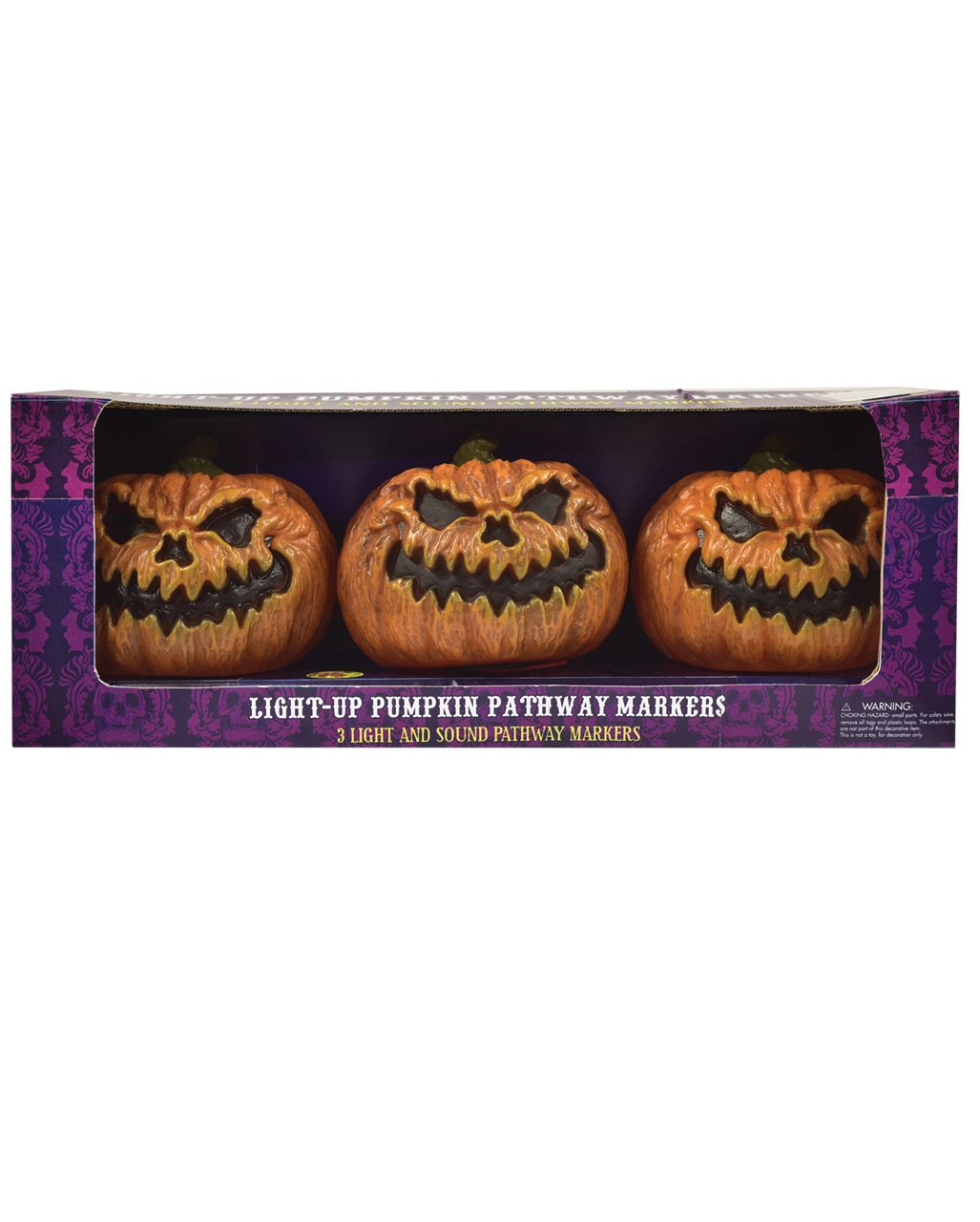 Jede wahre Halloween Party lebt von atmosphärischen Animatronics wie unseren bösen Kürbis Gehweg Lichtern mit Licht und Sound! Die unheimliche Außen-Deko für den Bürgersteig eignet sich wunderbar für Halloween & Grusel Partys!