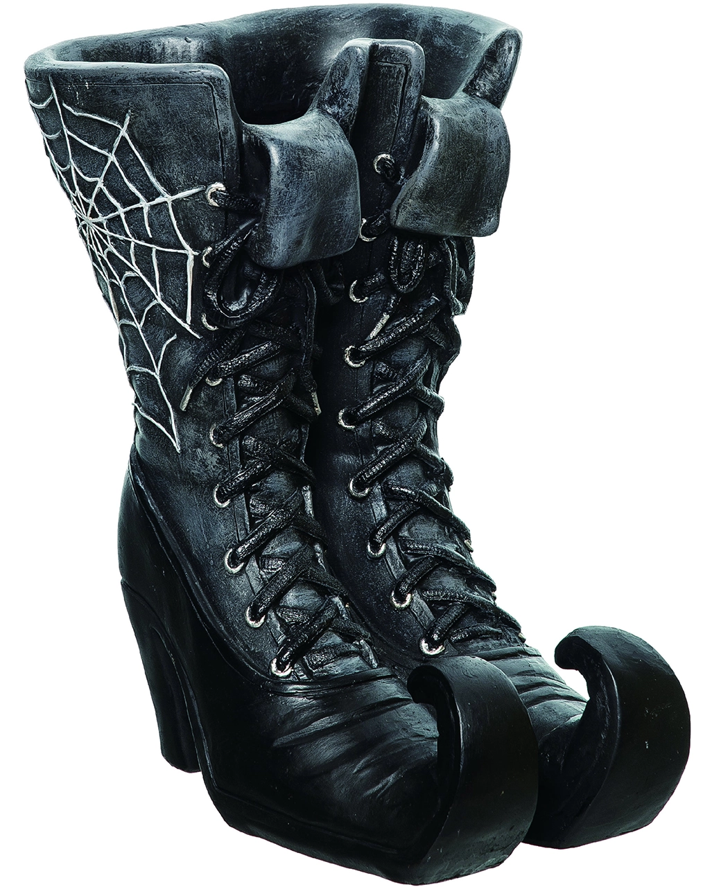 Außergewöhnliche Halloween Vase für Trockenblumen und saisonale Gestecke. Unsere Hexenstiefel Trockenvase ist eine extravagante Halloween-Tischdekoration und ein Muss für Liebhaber von Walpurgisnacht.