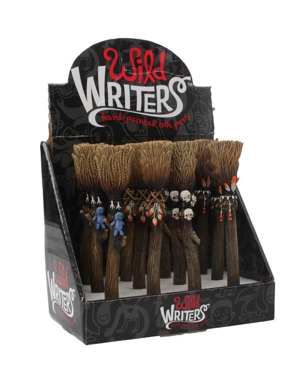 Der Kugelschreiber Hexenbesen Deluxe besteht aus Polyresin (Kunststein) und ist mit viel Liebe zum Detail verarbeitet & handbemalt. Der Voodoo Kuli ist in vier Designs erhältlich, geziert mit Totenköpfen, Voodoo Puppe & Federn. Die vier verschiedenen Modelle sind nicht wählbar, bestelle am besten mehrere gleichzeitig, dann ist die Chance der Abwechslung größer. Achtung, der Kunststein ist stabil, kann aber brechen.