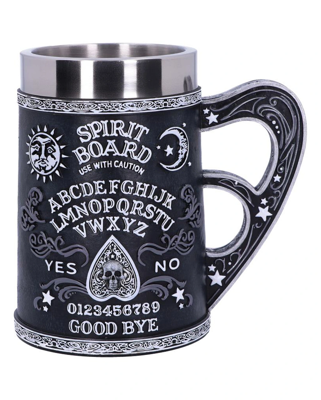 Spirit Boards sind für Hexen und Okkultisten seit langem eines der mächtigsten Werkzeuge, um Geister zu rufen. Der schwarze Ouija Board Bierkrug ist mit dem klassischen Spirit Board Design verziert und somit eine okkulte Tischdeko, die nicht nur Fans des Spirituellen begeistert.