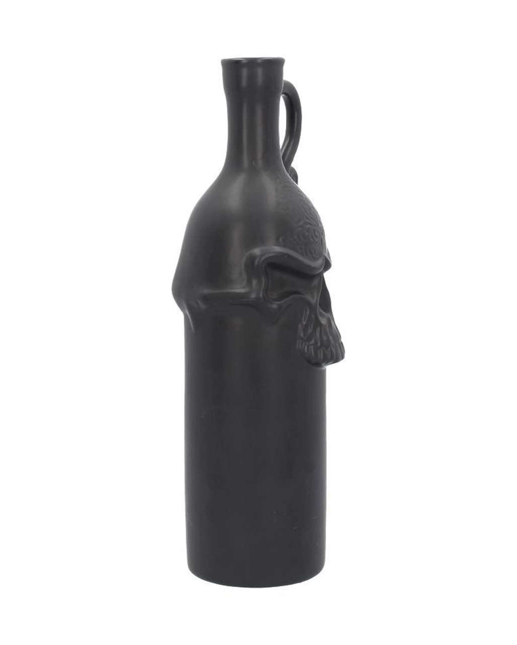 Die Todes Skull Karaffe weist eine Größe von ca. 26 cm auf und besticht durch ihr schönes Design. Ganz in Schwarz gehalten, sorgt ein stilisierter Totenkopf mit grimmigem Blick für eine schaurige Optik. Verschnörkelungen am Griff der Gothic-Amphore schmücken deine Halloween-Deko zusätzlich. Dazu passen der Fledermaus Kelch und die Blutbad Halloween Tischdecke.